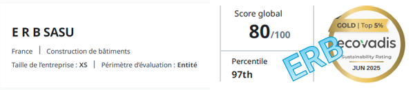 La société ERB a récemment obtenu la médaille d’or ECOVADIS, une distinction qui place l’entreprise parmi les 5 % les mieux notées parmi les milliers d’organisations évaluées chaque année à l’échelle internationale.